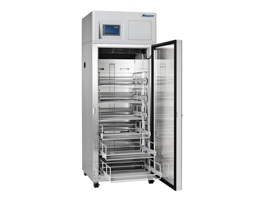 Cámara de Refrigeración de grado médico para Laboratorio y Farmacia. Controlador de temperatura con microprocesador con punto de ajuste de refrigeración ajustable que proporciona un control preciso. Sistema de refrigeración integral modular y por aire forzado. Rango de Temperatura (programable) de 2.2 a 10 °C. Refrigerante no-CFC R134a. Alarmas audibles y visuales de temperatura alta/baja y de puerta entreabierta programables por el usuario. LCD de 7" pantalla táctil. Puerta de vidrio o sólida.
