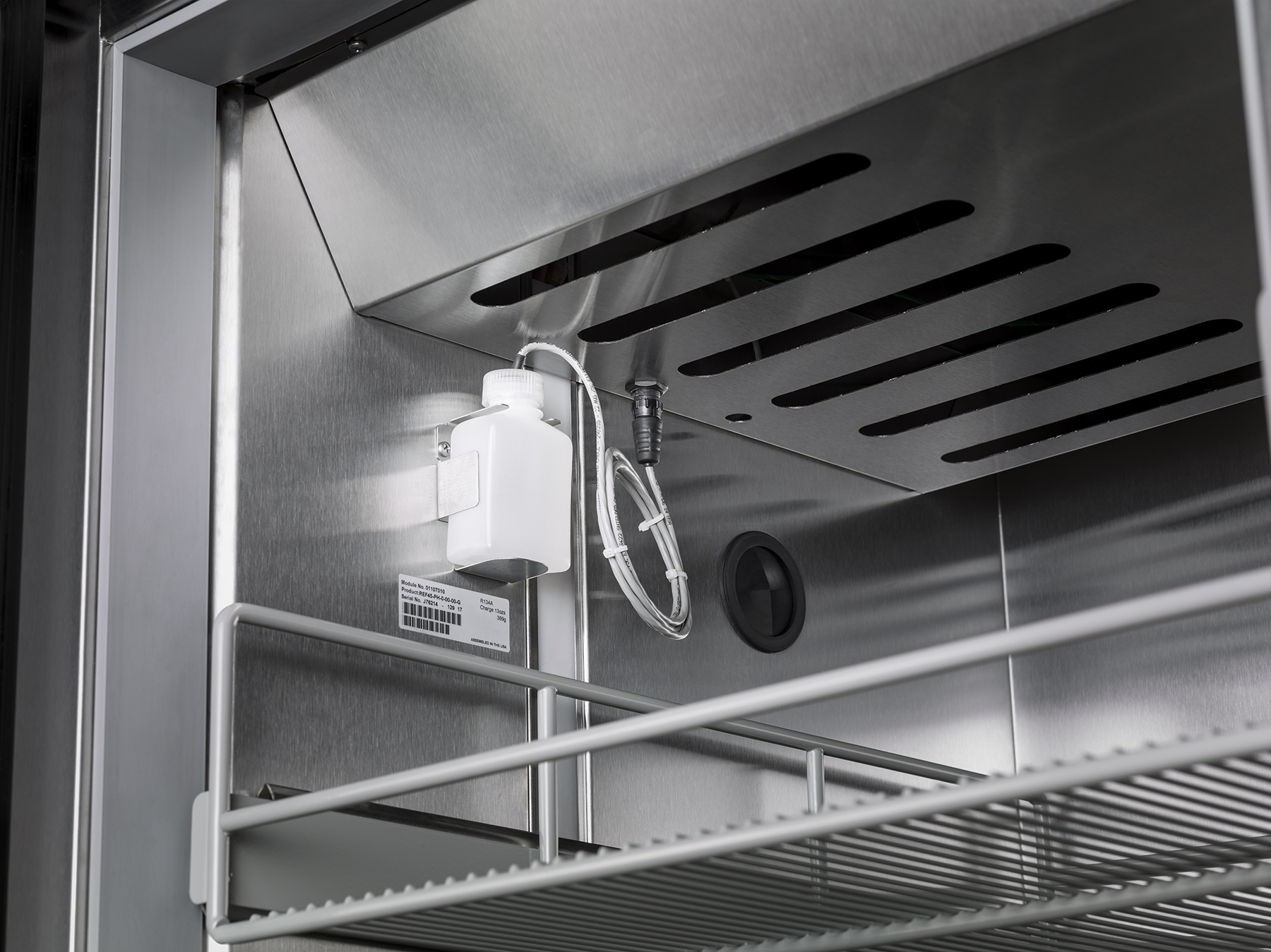 Cámara de Refrigeración de grado médico para Laboratorio y Farmacia. Controlador de temperatura con microprocesador con punto de ajuste de refrigeración ajustable que proporciona un control preciso. Sistema de refrigeración integral modular y por aire forzado. Rango de Temperatura (programable) de 3.3°C a 10 °C . Refrigerante no-CFC R134a. Alarmas audibles y visuales de temperatura alta/baja y de puerta entreabierta programables por el usuario. LCD de 7" pantalla táctil. Puerta de vidrio o sólida.