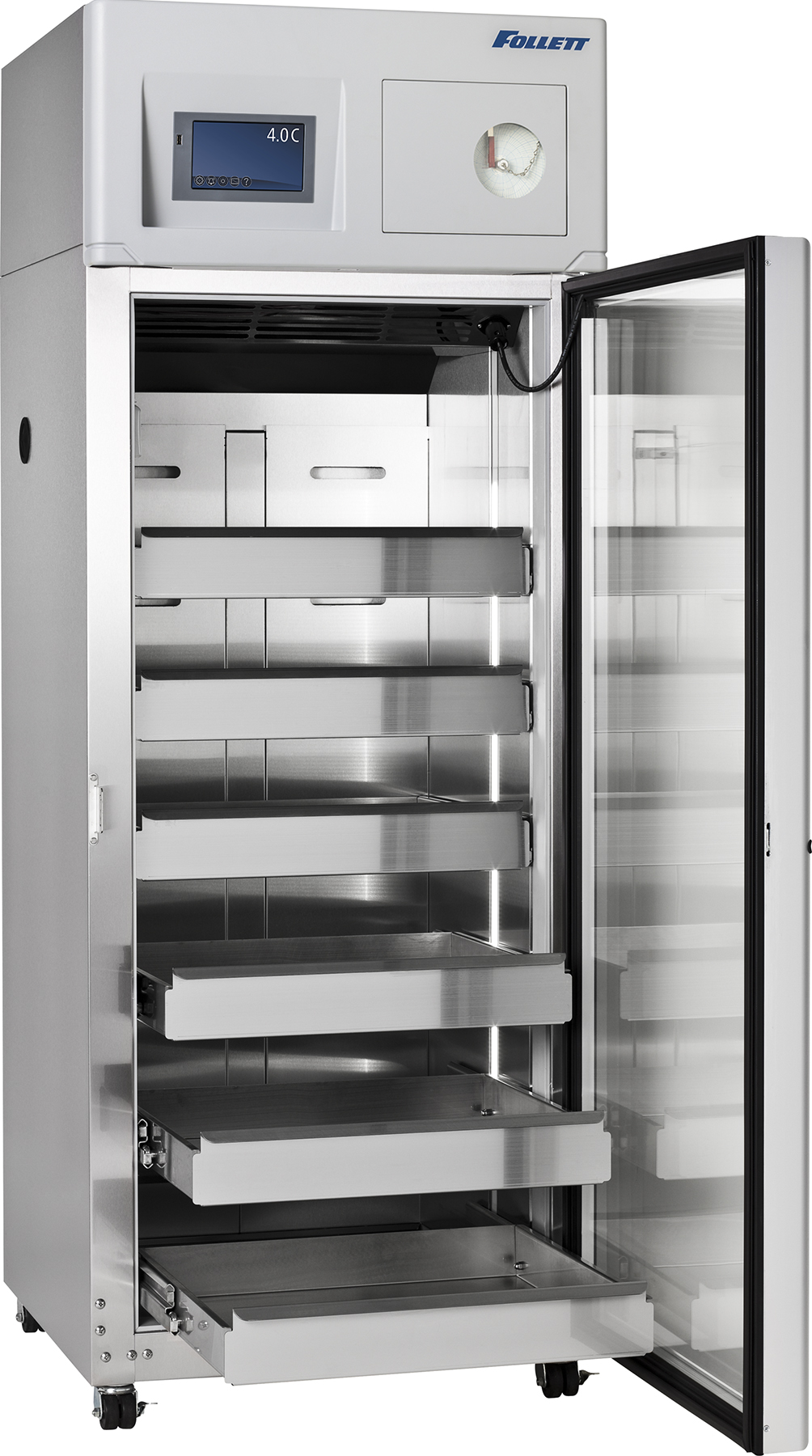 Cámara de Congelación de grado médico para Plasma. Controlador de temperatura con microprocesador con punto de ajuste de refrigeración ajustable que proporciona un control preciso. Sistema de refrigeración integral modular y por aire forzado. Rango de Temperatura (proglamable) de -37.2 a -17.8 °C. Refrigerante no-CFC R404a. Alarmas audibles y visuales de temperatura alta/baja y de puerta entreabierta programables por el usuario. LCD de 7" pantalla táctil. Puerta sólida. Cumple estándar AABB, ARC y FDA para almacenar sangre